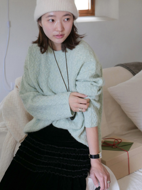 [티엔느] 웜 파스텔 케이블 니트_민트