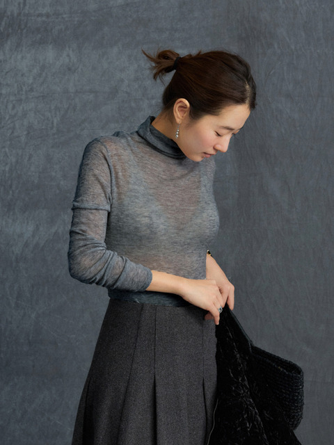 [티엔느] 글램 터치 소프트 텐셜 하이넥 롱 슬리브 탑