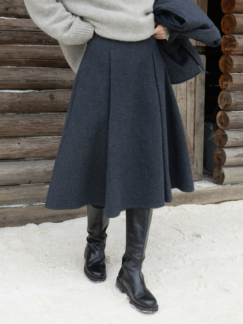 [티엔느] 그리드 울 플레어 스커트