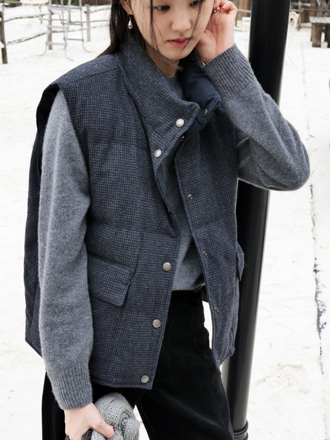 [티엔느] 그리드 퍼프 리버시블 패딩 베스트