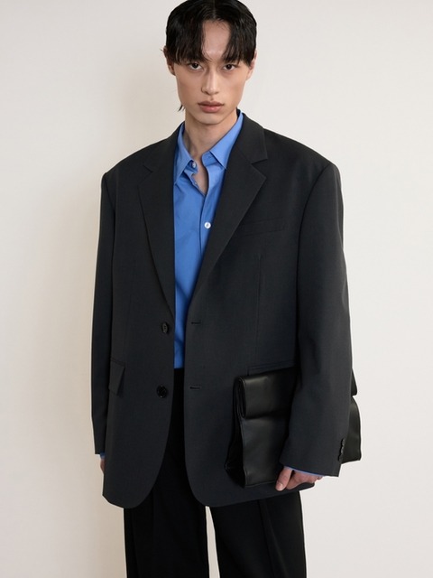 [티엔지티] 다크그레이 오버사이즈 싱글브레스트 셋업 자켓
