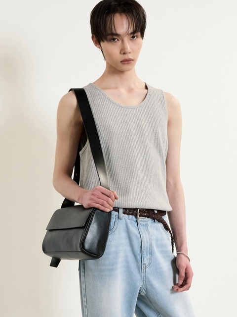 [티엔지티] 그레이 레귤러핏 리브드 슬리브리스