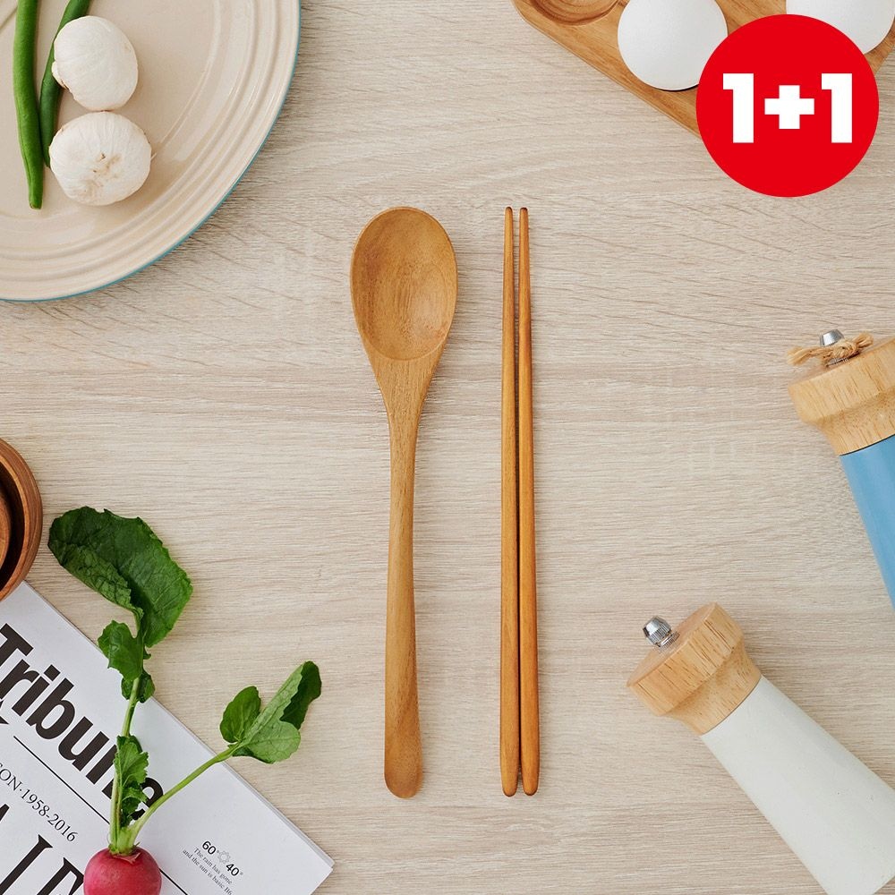 [1+1] 99.9% 항균! 티크 원목 수저세트 (총2세트)
