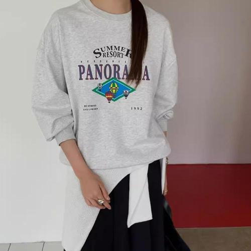 파노라마 맨투맨 프린트 긴팔 티셔츠 탑