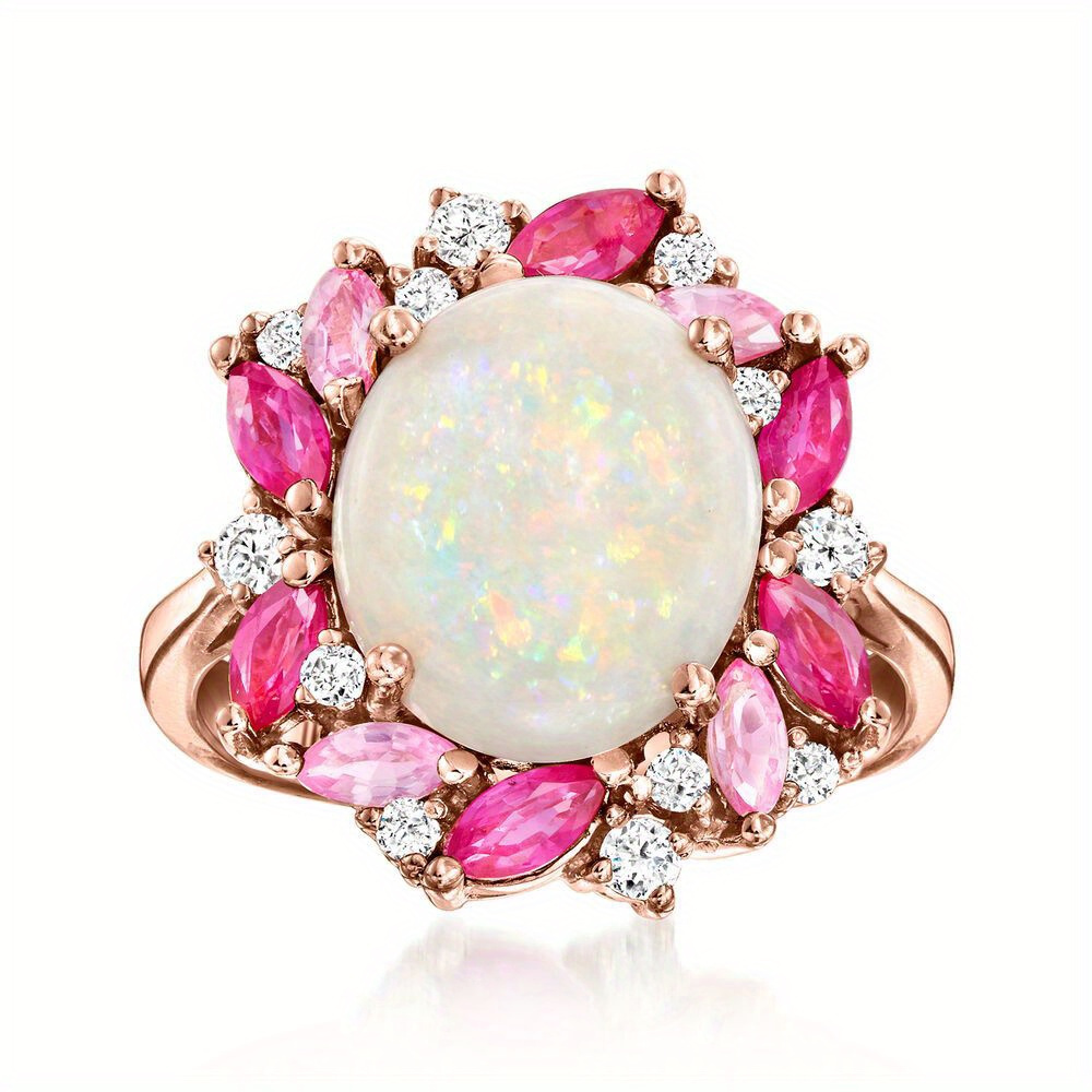 TEMU 빈티지 스타일 로즈 골드 & 핑크 오팔 약혼 반지 - 그녀를 위한 완벽한 선물, 사계절 착용 가능
