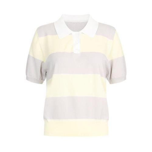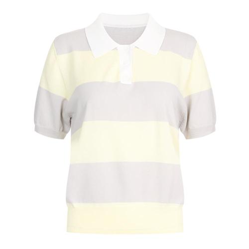 여성 카라넥 단가라 파스텔톤 반팔 니트 티셔츠 BOM-WKN-20676-옐로우