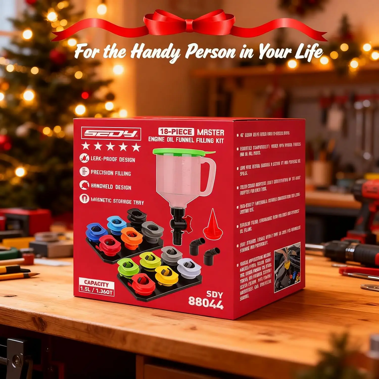 18피스 엔진 오일 깔때기 세트, 1.36쿼트 자동차 오일 깔때기 키트 (12개 어댑터, 엘보 피팅, 화살표 스크린 자석 보관함 포함)