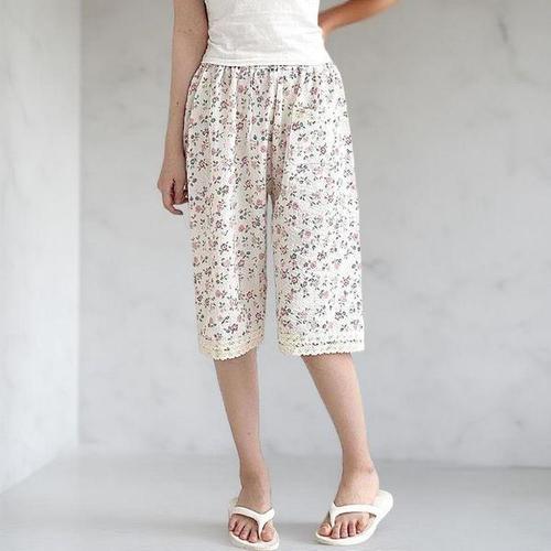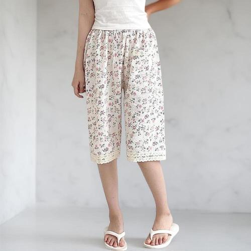 [옷자락]여성 여름 파자마 꽃무늬 5부 밴딩 바지