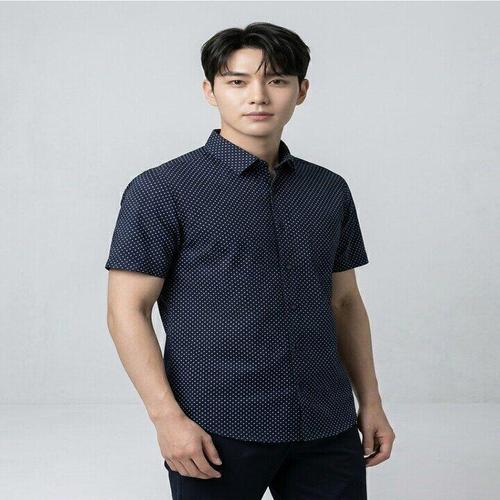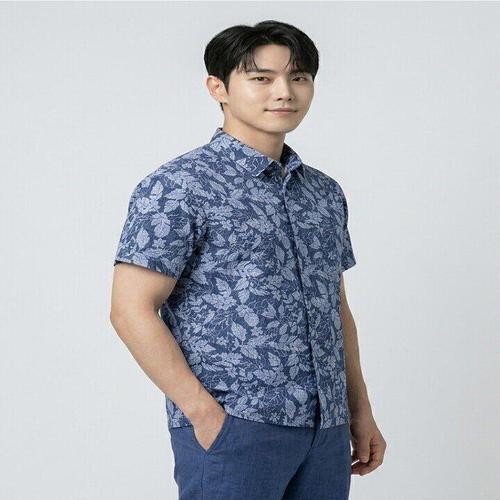 [BY파크랜드][오스틴리드][면리플]네이비 올오버 프린트 반팔 셔츠-A2MA2411030B