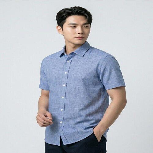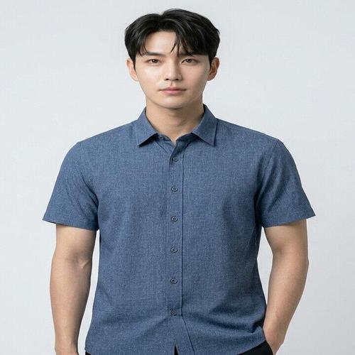 [BY파크랜드]블루 솔리드 반팔셔츠-A2CS2411029A