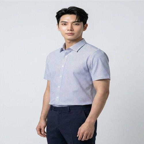 [BY파크랜드][오스틴리드][EASY CARE/SLIM FIT] 네이비 스트라이프 반팔 드레스 셔츠-A6XC2411038B