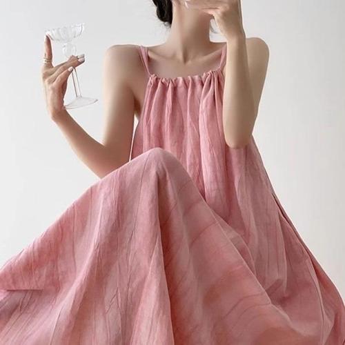 [엄지척]홀터넥 핑크원피스 셔링 리본 드레스 셀프웨팅 파티룩_19913954_667501