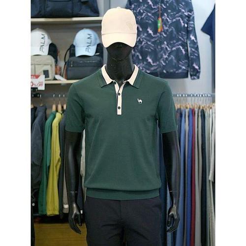 [팜스프링스]팜스프링스 남성 골프 봄 여름 시스루 로고 배색 반팔 카라 니트 YQSKTM252350Y