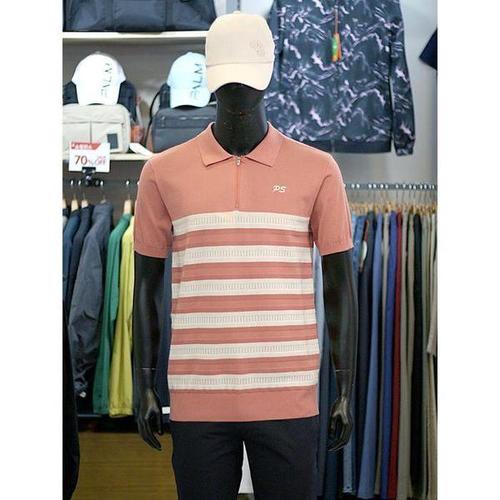 [팜스프링스]세이브존03 골프 남성 봄 여름 스트라이프 배색 반집업 카라 반팔 니트 YASKTM252352Y