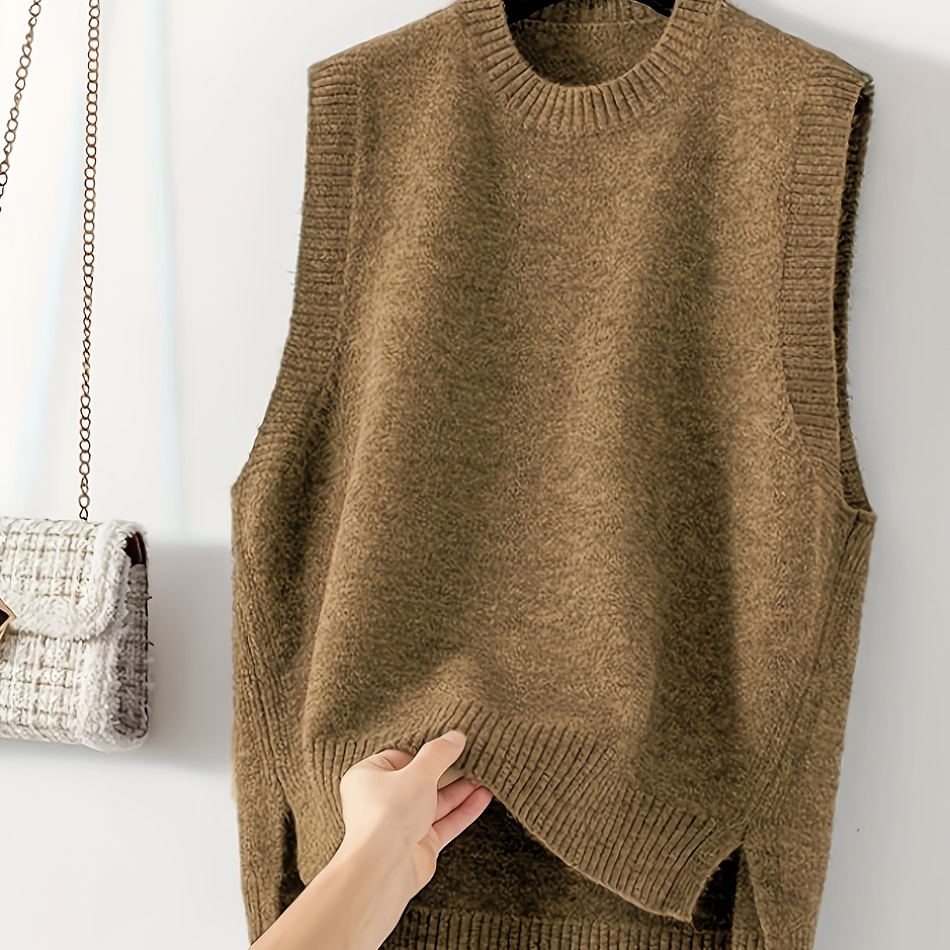 TEMU 가을 겨울용 미디엄 길이 라운드넥 슬리브리스 조거 니트, 사이드 슬릿 루즈핏 패션 크롭탑