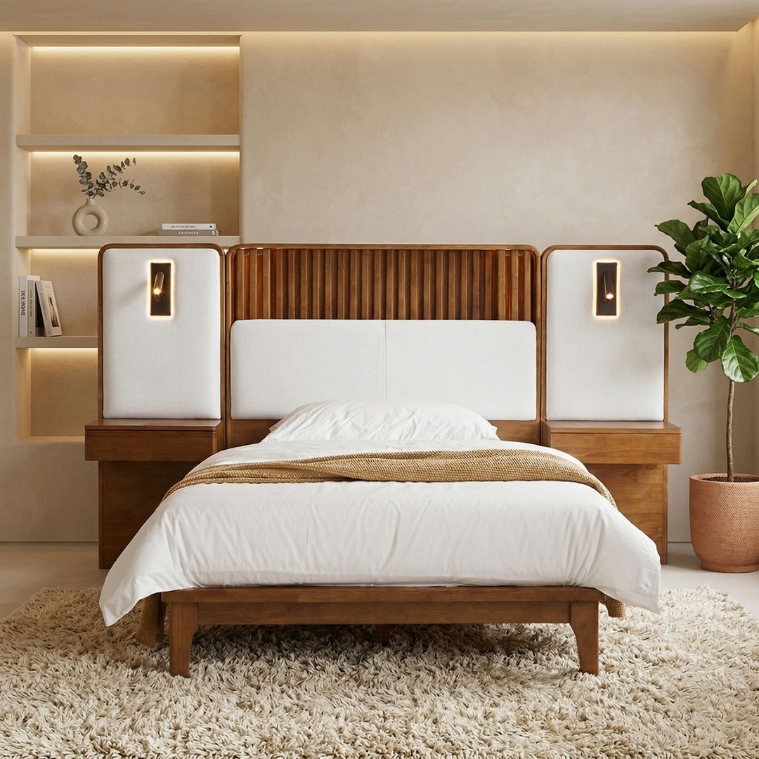 바우미스트 멜로 호텔침대 템바보드 원목 LED 수납 패브릭 이지클린 SS S Q K LK
