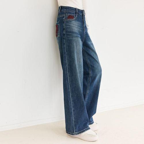 [로즈엘리]레트로 패치 데님팬츠 사계절 청바지 4컬러