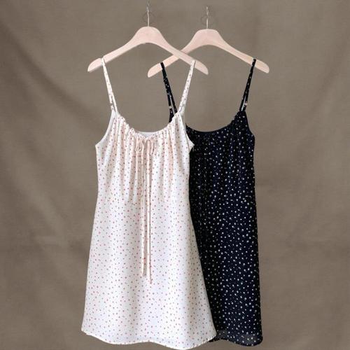 [미라클세븐]여성용 리본 끈 조절 미니 드레스 잔꽃 패턴 셔링 원피스