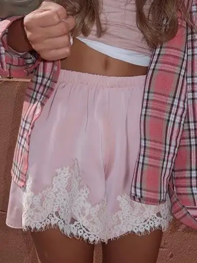 귀여운 여성용 새틴 실크 레이스 트림 반바지 실키 로우라이즈 박서 반바지 Y2K 십대 소녀 Y2K 코켓 라운지 슬립 바텀