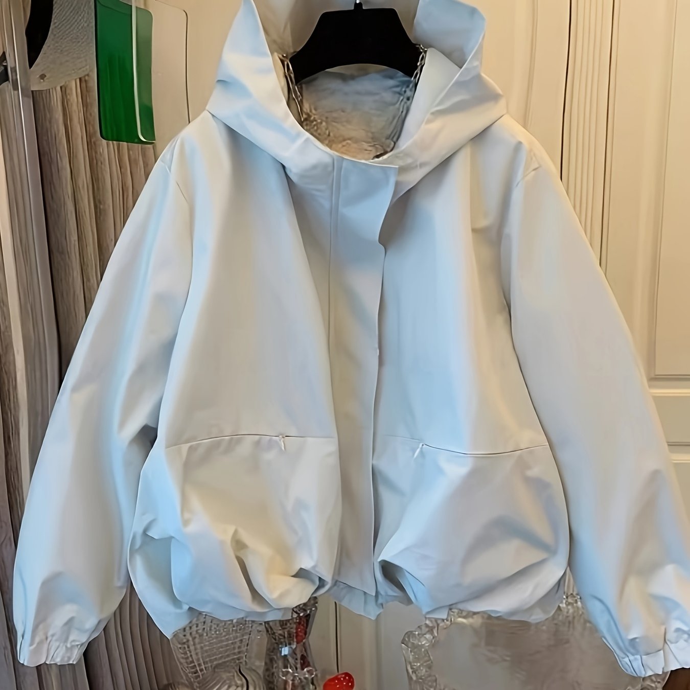 TEMU 여성용 라이트 후드 집업 재킷 (드로스트링 포함), 캐주얼 올 시즌 아우터, 앞면 포켓, 긴소매, 세탁기 사용 가능, 캐주얼 아우터 | 디자인 | 지퍼 재킷