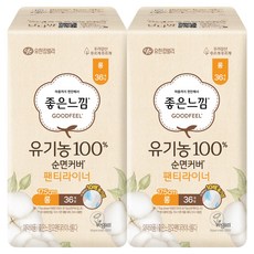 좋은느낌 유기농 100% 순면커버 팬티라이너, 롱, 36개입, 2개