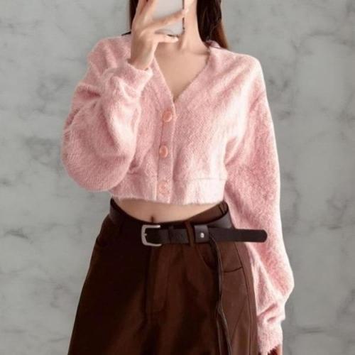샵앤) 국산 여성 브이넥 크롭 퍼 니트 가디건 WON-WCD-WFFQRO8