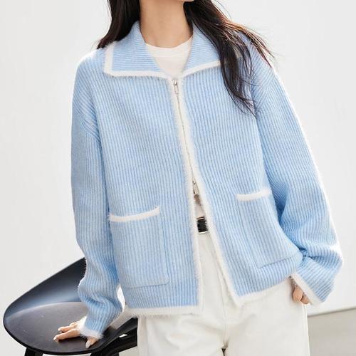 [블랙퀸][블랙퀸] 퍼카라 지퍼 니트가디건 blk004404