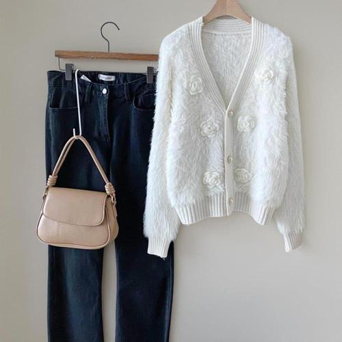 [털빠짐x/여신룩] 보들보들~ 슈가 솔잎 가디건, 깃털 퍼 앙고라 브이넥 가디건