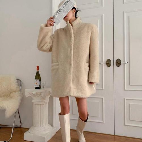 [다잇템]여자 만다린 무스탕 오버핏 보온 퍼코트 자켓