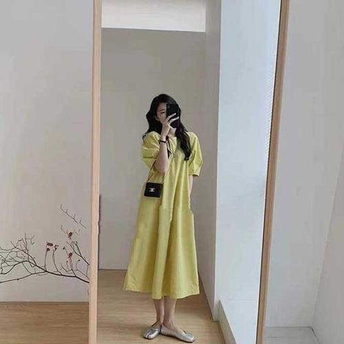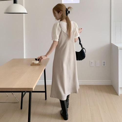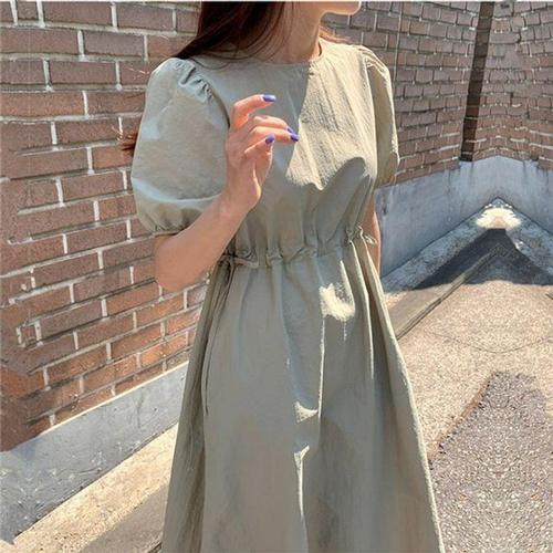 [옷자락]여성 여름 캐주얼 퍼프소매 롱드레스