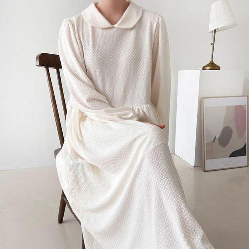 [옷자락] 여성 빅사이즈 가을임부복 퍼프 셔링 롱 드레스