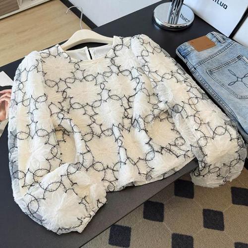 [신상오픈런]여성 77사이즈 가을 하객룩 카라넥 패턴 퍼프 롱드레스