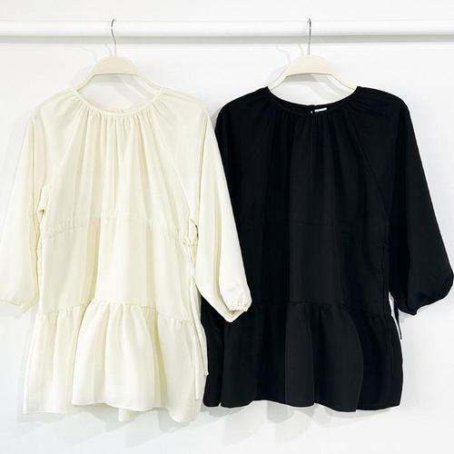 COSYEVNO 셔링 퍼프 A라인 스커트 허리조임 원피스