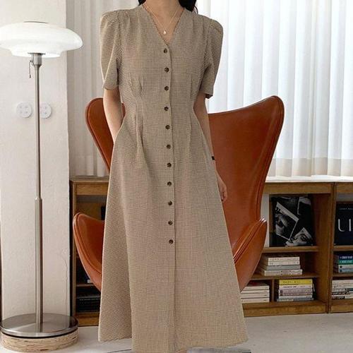 [오너클랜]인기상품 타탄브이칼라 와이셔츠 반소매 퍼프디테일 미니드레스 이지 [WFLELXI_260415]