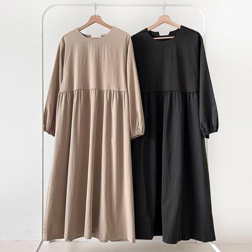 무드퍼프캐주얼 내추럴코튼 플레어라인 미니드레스