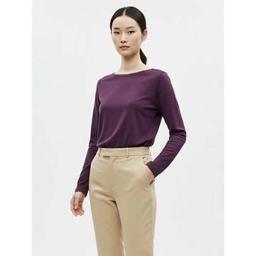 [샵앤]국산 여성 보트넥 이중지 시보리 면 워싱 긴팔티 DAI-WSH-20811-퍼플