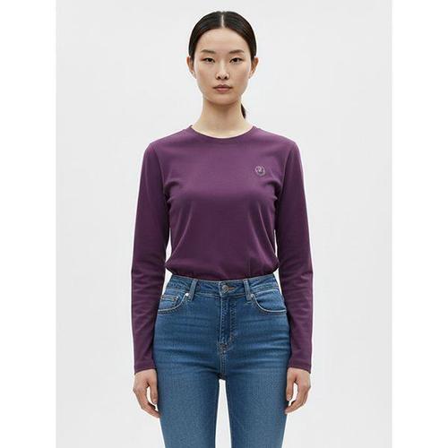 [샵앤]국산 여성 라운드 러브 스마일 자수 긴팔 면 티셔츠 DAI-WSH-20816-딥퍼플
