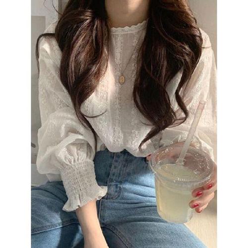 [오너클랜]인기상품 여성 펀칭 레이스 긴팔 블라우스 러블리 데일리룩 [WFJOOWQ_260323]