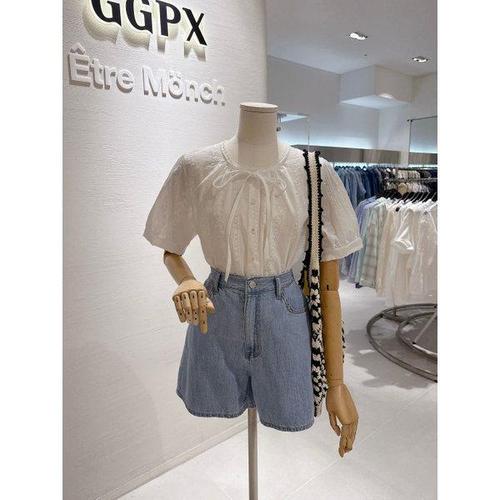 르샵 레이스 카라 펀칭 반팔 블라우스 DP3BA017A 466084