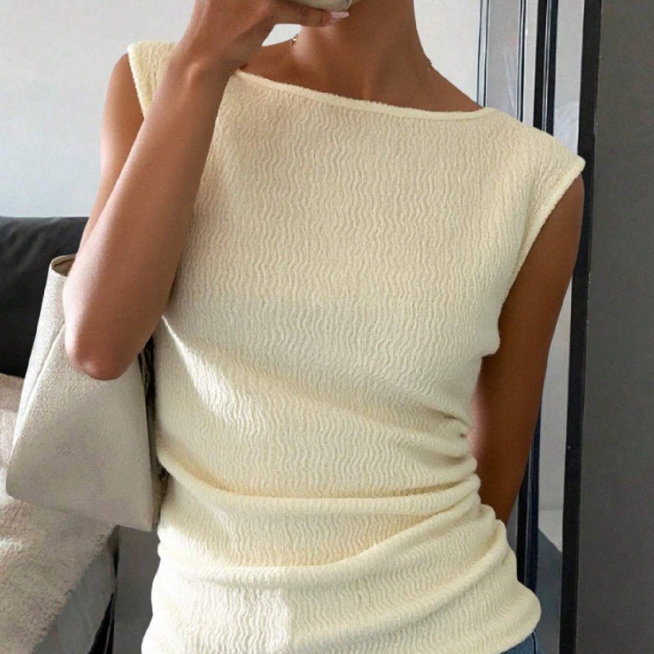 TEMU 패션 여성용 새로운 오프숄더 슬림핏 퍼프 슬리브 텍스처 블라우스/탱크탑