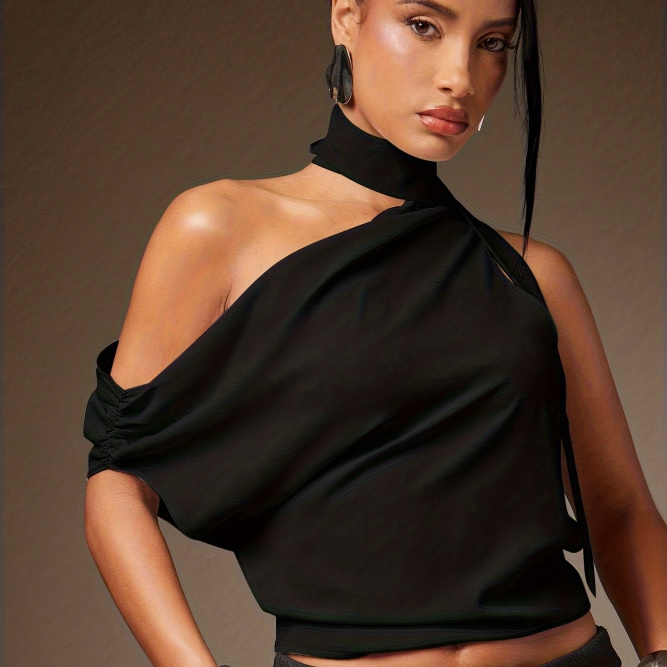 TEMU 블랙 원숄더 디자인과 러플 스카프 디테일이 있는 여성 탑. 이 우아한 오프숄더 블라우스는 데이트, 쇼핑, 오피스룩, 파티, 캐주얼 외출에 완벽하며 모든 계절에 적합합니다.