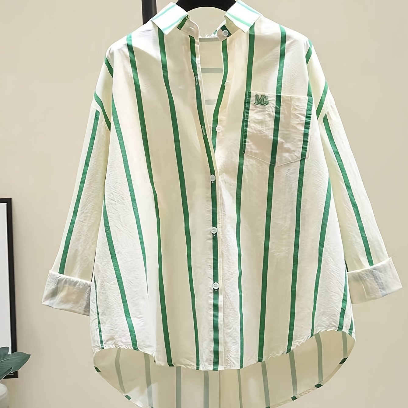 TEMU 패션 오프숄더 루즈 패치 포켓 셔츠