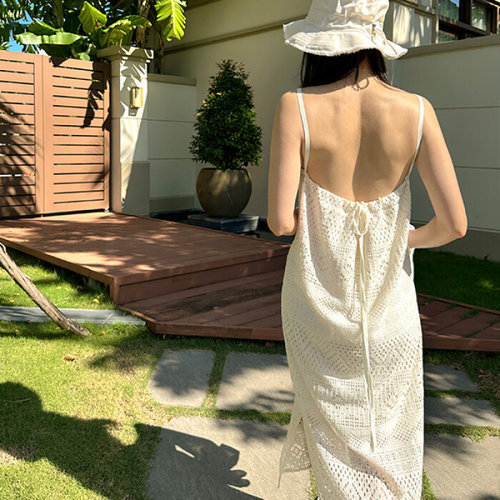 데일리룩 레이스롱원피스 펀칭 레이스 휴양지룩