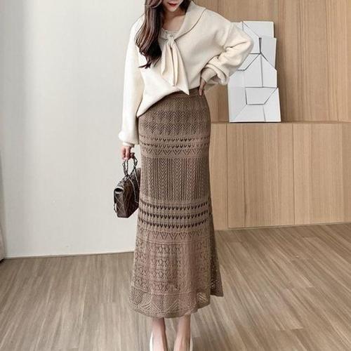 레이스니트 롱스커트 펀칭니트치마 F006613 밴딩 WD5483A