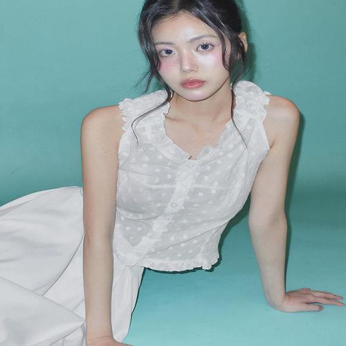 플린디 펀칭 자수 레이스 밴딩 끈나시 블라우스(3color)