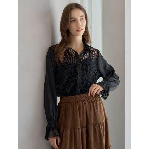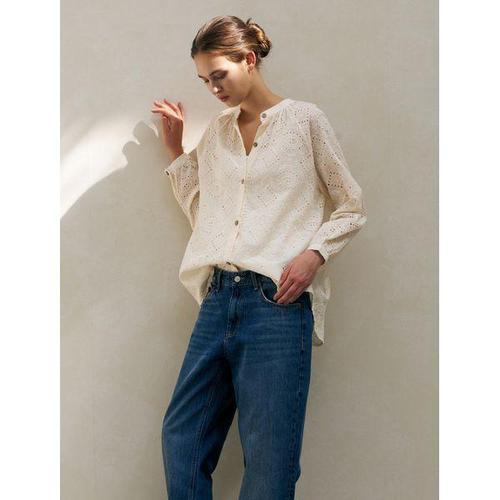 [BNX]여성 펀칭 레이스 노카라 긴팔 셔츠 (BX1BL001L0)