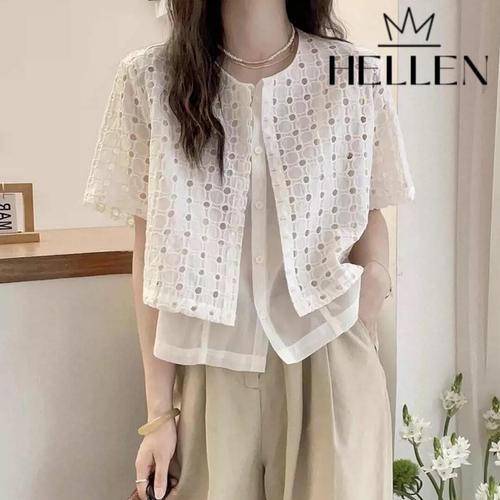[헬렌]헬렌 레이스 펀칭 시스루 숏 블라우스 듀오레블라우스