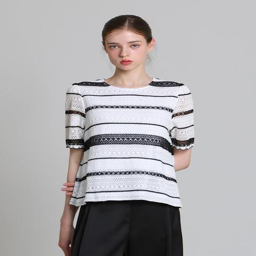 러블리 펀칭 레이스 반팔 블라우스 JSC-d0091