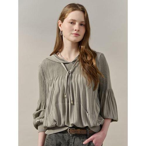 [마쟈]링클 펀칭 볼륨 소매 후드 블라우스