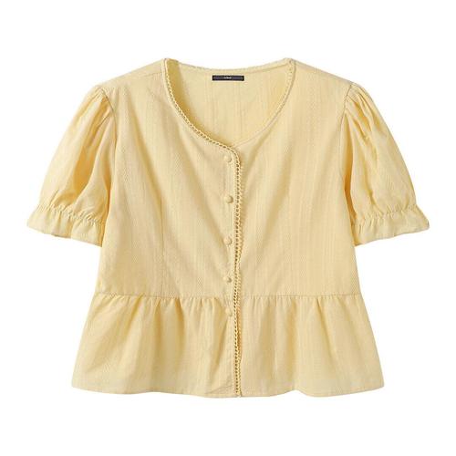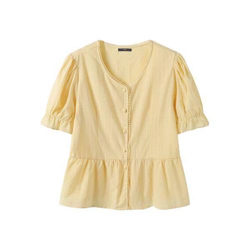 요시아나 [당일발송] 나르시코 뜨개 레이스 펀칭 퍼프소매 블라우스